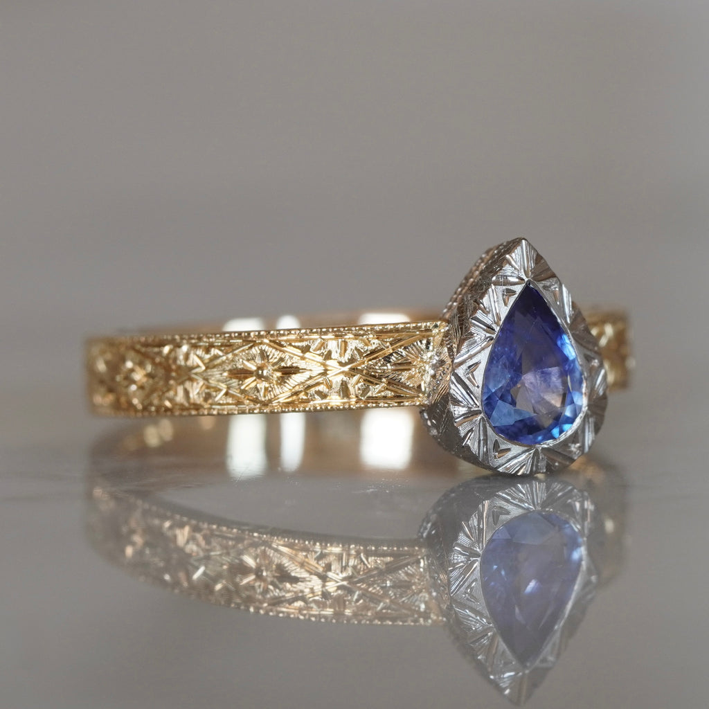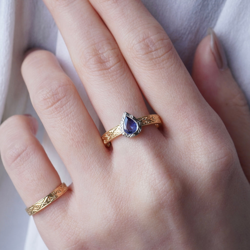 濃淡のある表情の中に、クリスタルのような凛とした輝きを放つブルーサファイア。